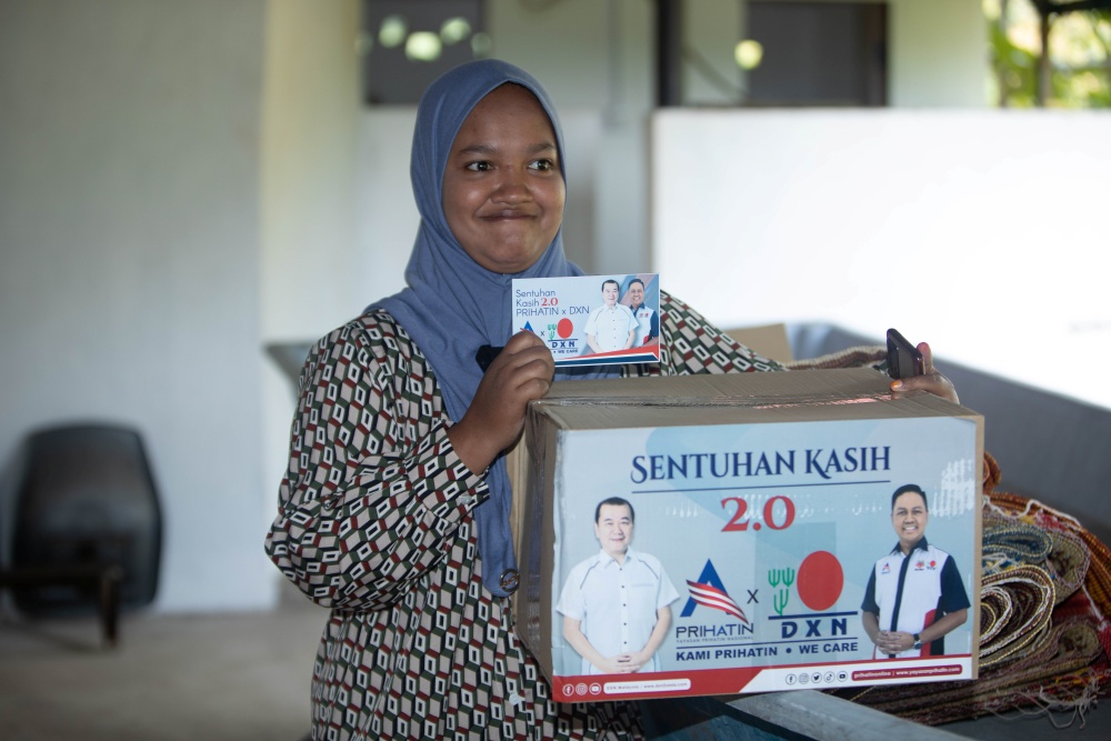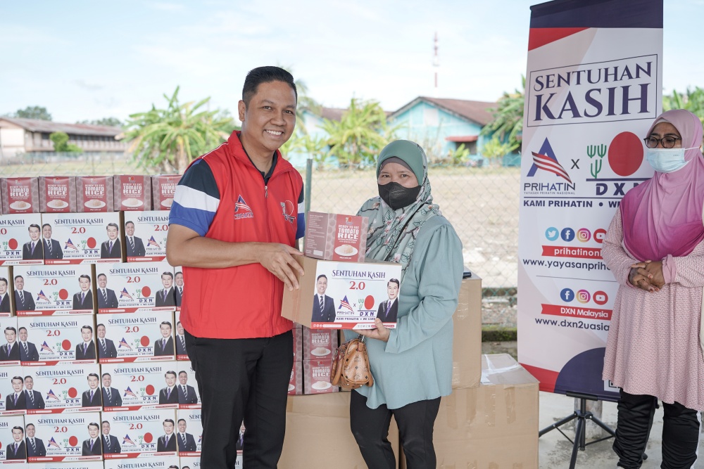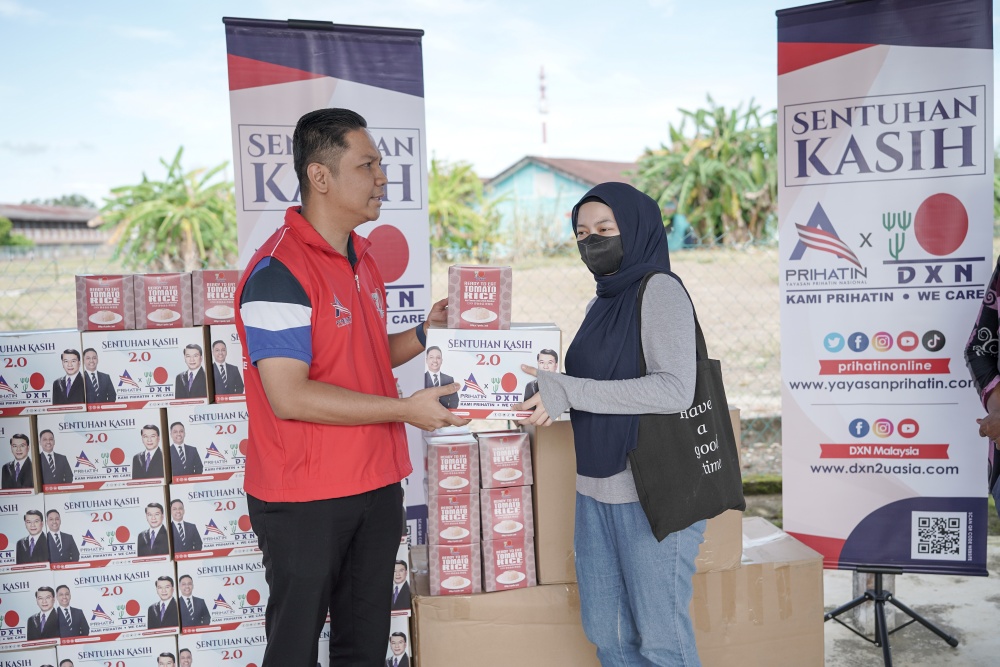 Sentuhan Kasih PRIHATIN x DXN 2.0 is the continuing initiative by Yayasan Prihatin Nasional (PRIHATIN) and DXN Holdings Berhad, who are concerned about the situation of the flood victims affected by the floods that occurred in December 2022. This program was organised in support of the government's call to face challenges together as Malaysians, by assisting each other regardless of race. The program has been warmly received previously. Through this strategic collaboration, PRIHATIN and DXN help fulfill the victims' necessities and at the same time, alleviate their burden.
